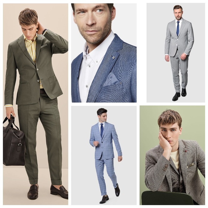 Synthetic and natural additives are often added to the wool base. Cashmere makes the fabric softer and more pleasant to the touch and improves thermal insulation properties. This material is ideal for warm suits. The combination of wool with lycra or polyester increases wear resistance and deformation resistance at the elbows and knees. Cotton, silk and linen are often used for casual summer suits.