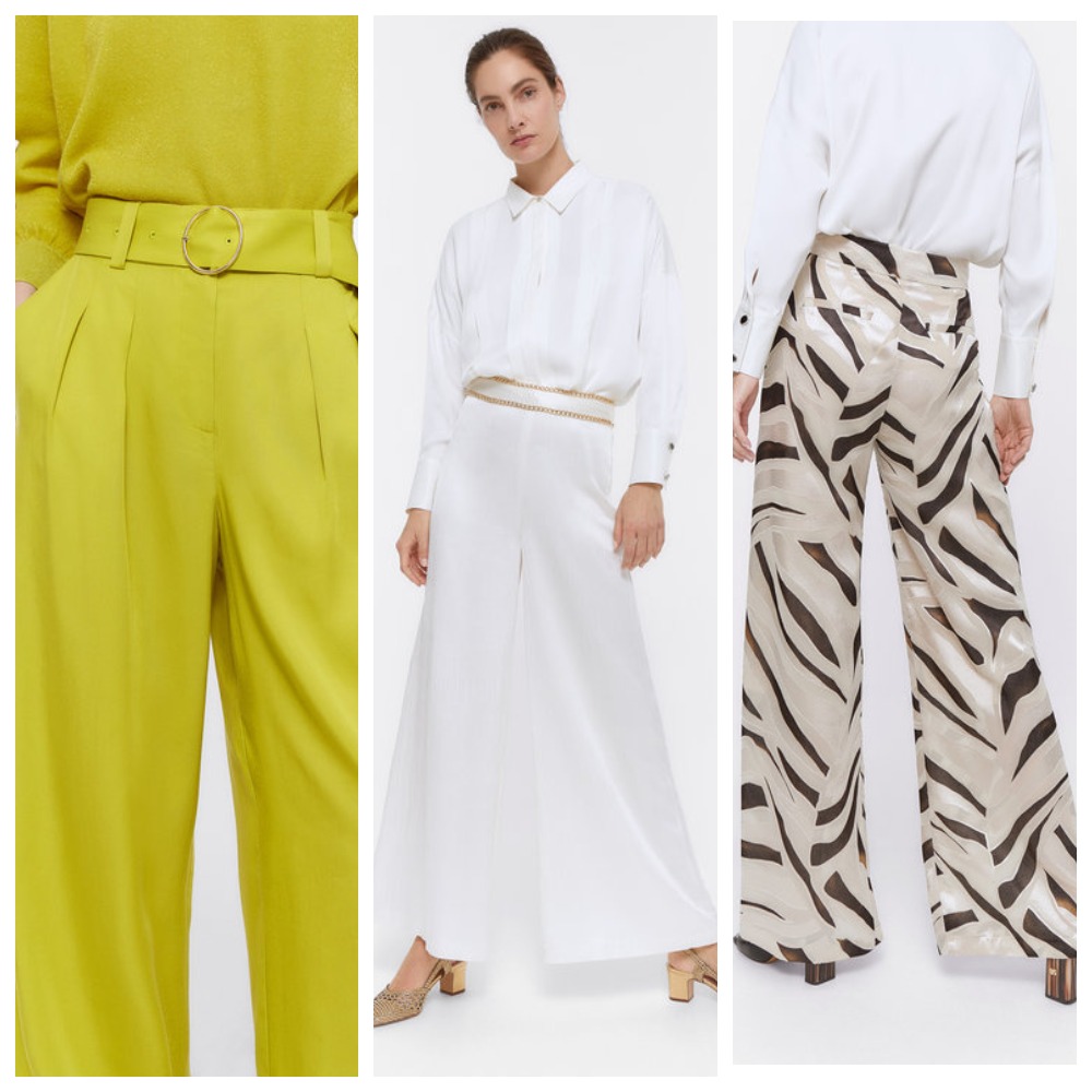 - Uterque - a gourmet apparel and accessories store offers vibrant culottes with buckles, as well as wide pants made of light flowing fabrics, complemented by stylish straps and golden chains.