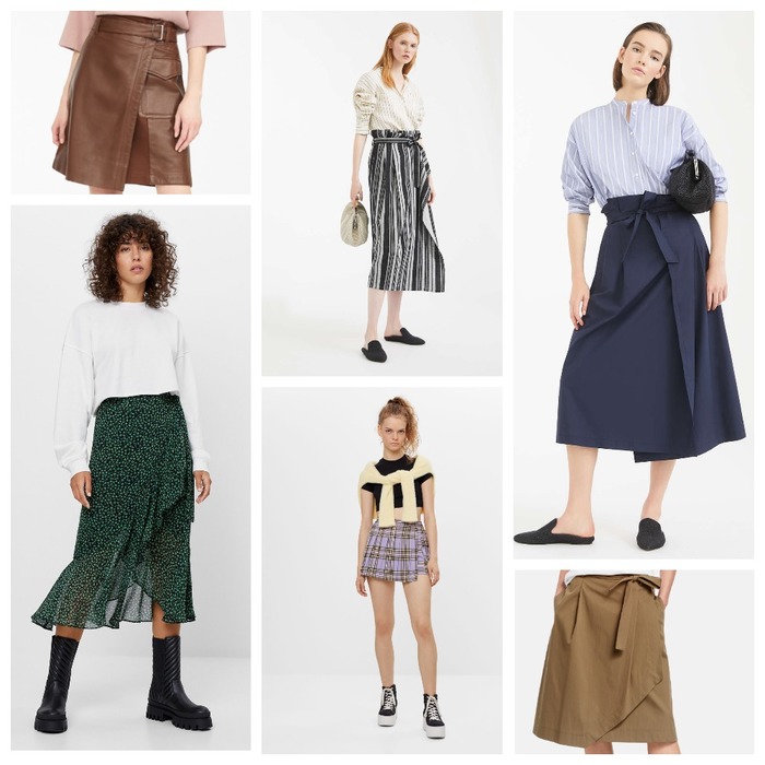 It doesn't matter if you are choosing an image for an office or a club party - wrap skirts are relevant in any situation. A solid-colored miniskirt paired with an eye-catching print shirt and heeled ankle boots will create a romantic look for a date. On the beach, tie a skirt will be appropriate, and for a more serious look, choose a straight midi.