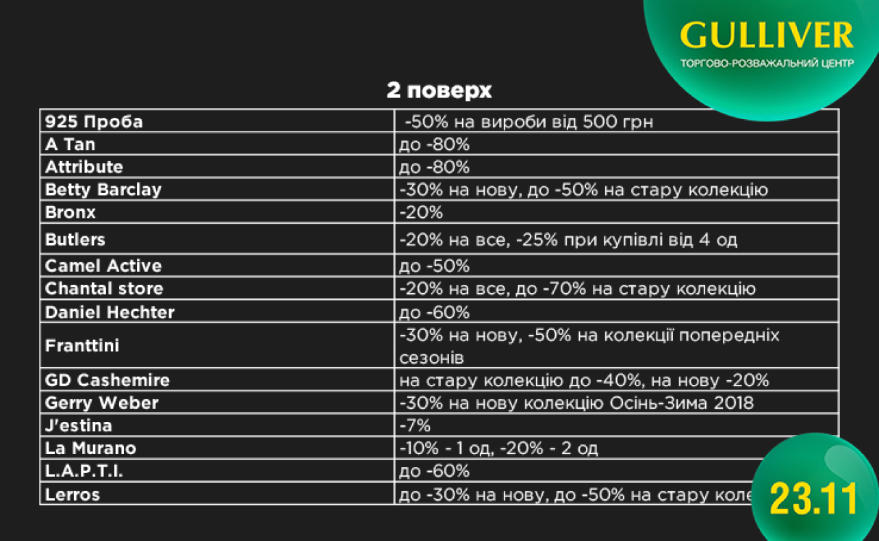 Побачимось 23 листопада у Gulliver!