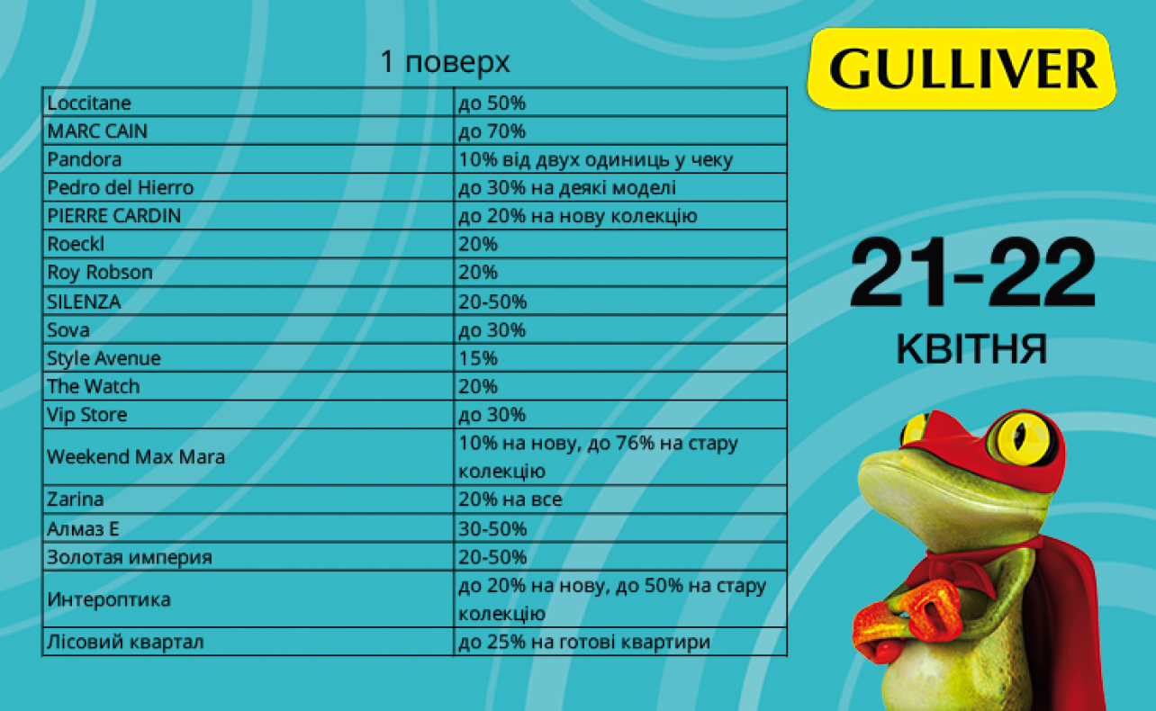 21 і 22 квітня в ТРЦ Gulliver, вона буде захищати вас від величезних цінників.